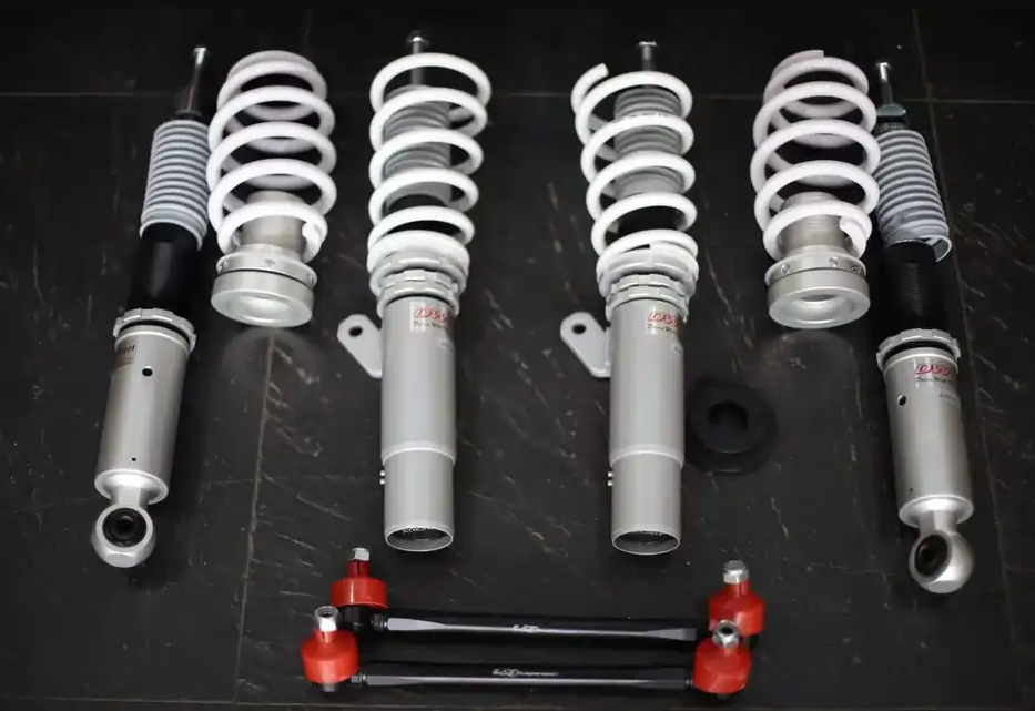 Жесткость передних пружин — 6 кг/мм. Жесткость задних пружин — 5 кг/мм. Диапазон регулировки высоты от 2,5 см до 9 см. Регулировка сжатия пружины. Регулировка жесткости стойки через демпфер 32 положения